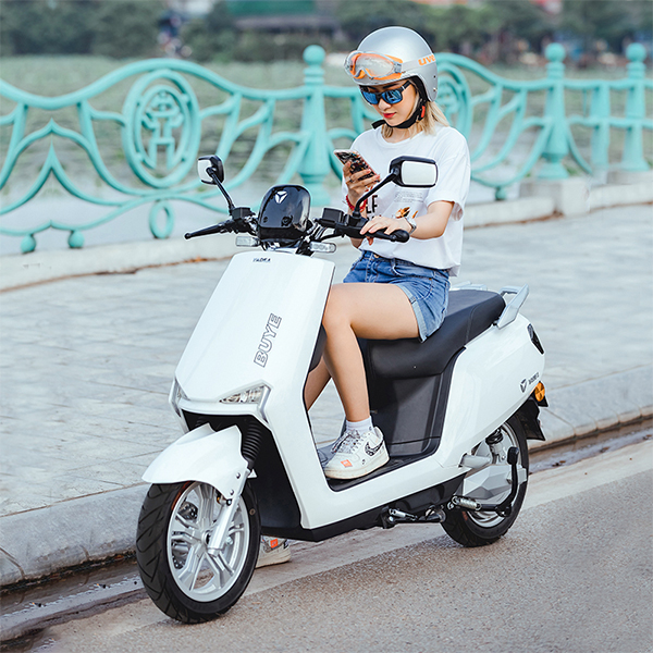 Tiếp tục chinh phục các khách hàng yêu thích sự mạnh mẽ đó là mẫu xe BuyE. Động cơ của BuyE cũng đạt công suất 1.200W, phanh đĩa đối xứng trước-sau. Độ trễ ga gần như bằng 0, nên lái BuyE xe sẽ cho cảm giác cực khỏe. Tuy nhiên, xe không hề cho cảm giác "bay", mà rất đầm xe. Nhờ thiết kế phân bổ trọng lượng xe phù hợp.